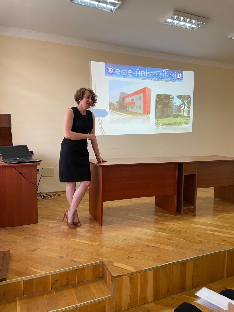 COP-29 üzrə Fəaliyyət planına əsasən AzMİU-nun “ST və MKS” fakültəsində elmi seminar keçirilmişdir. Ege Universitetinin professoru, Nukleer elmləri İnstitutunun direktoru, Sabriye Yuşan seminarda çıxış etmişdir. Prof. S.Yuşanın çıxışı olduqca maraqla qarşılanmışdır.